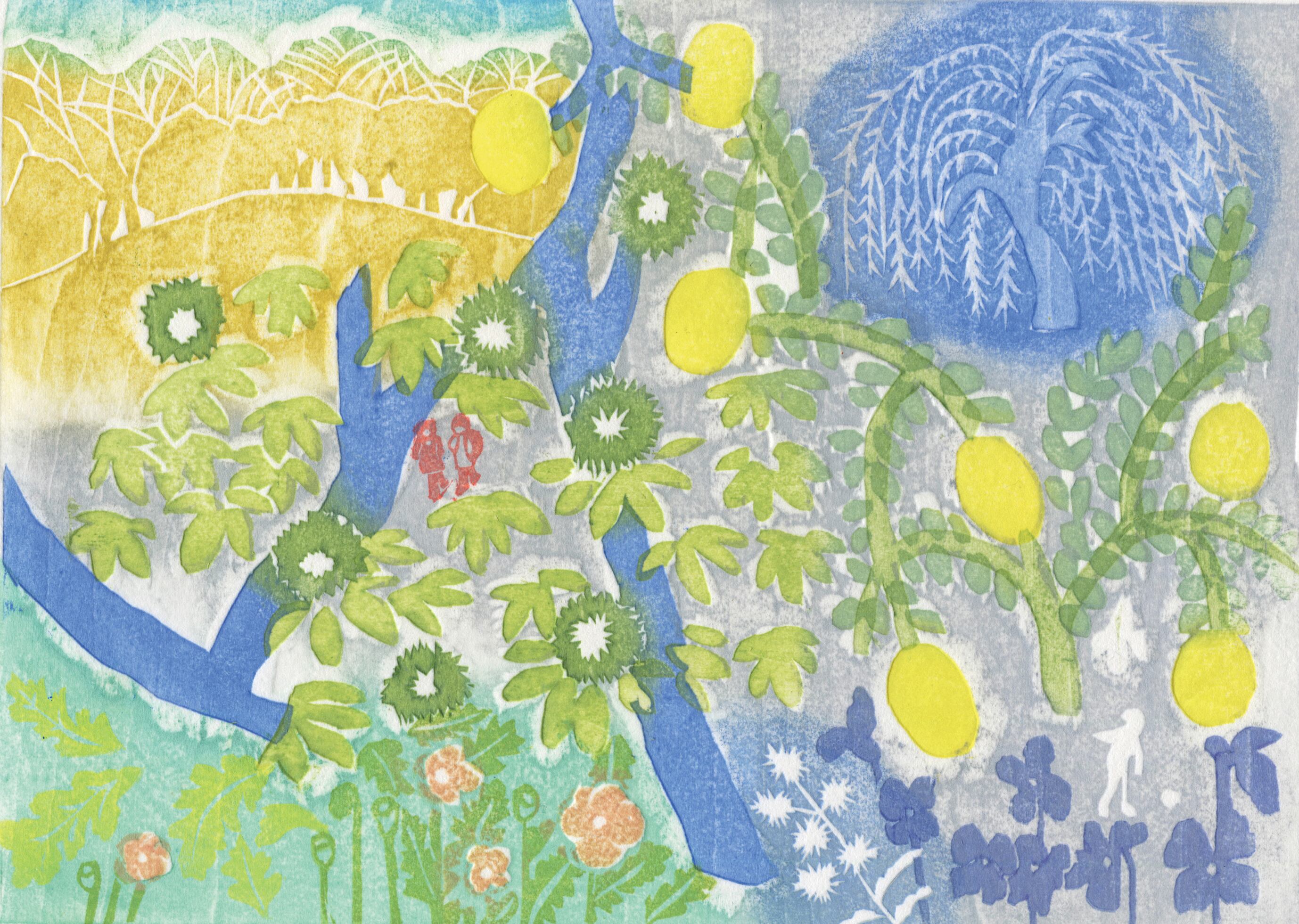 水性多色刷り木版画です。和紙に一枚一枚丁寧に手刷りで仕上げています。たった一つのアートを通じて、心温まるひとときをお楽しみください。エディション入りで、特別なコレクションにぴったりです。