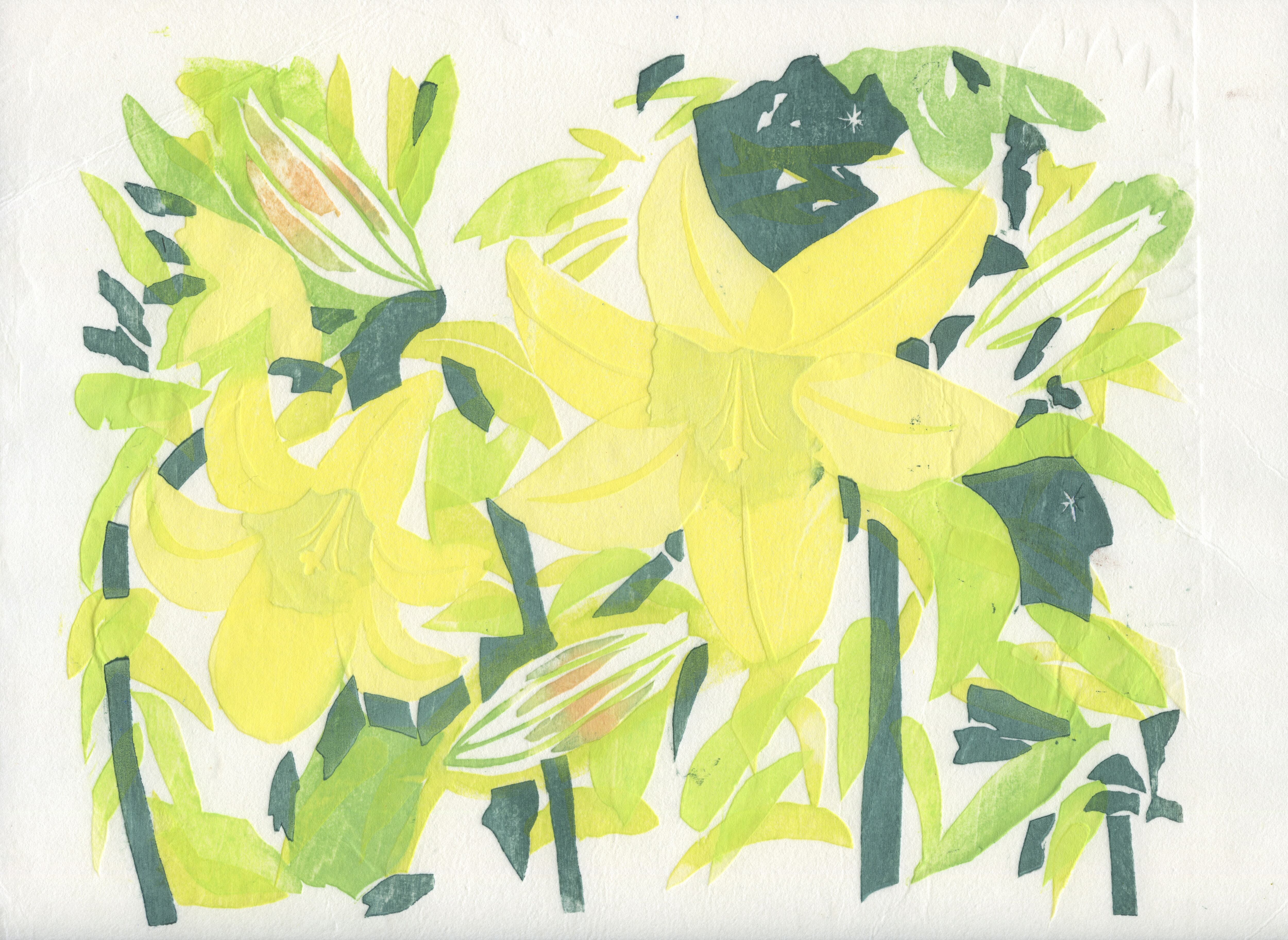 木版画 黄色い百合