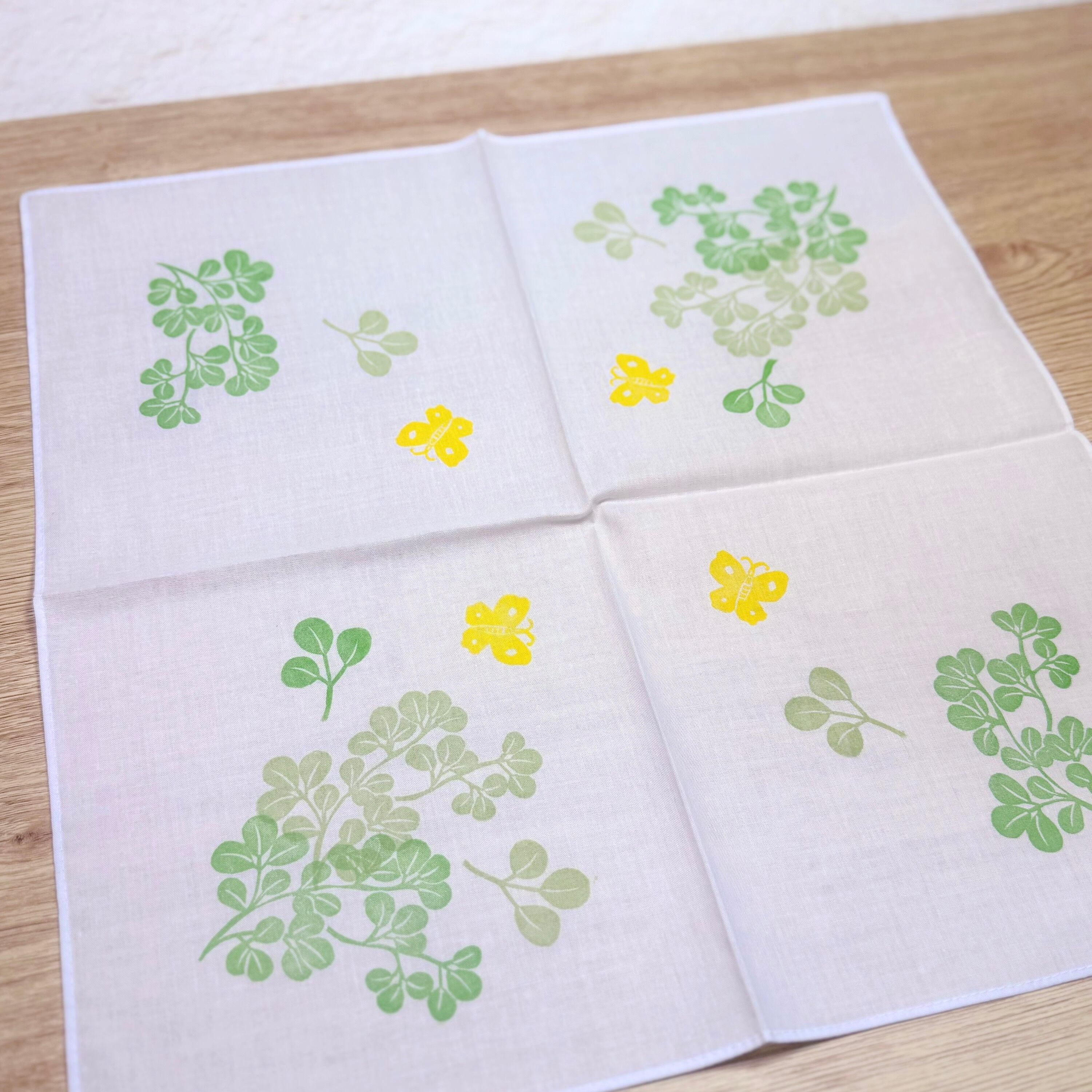 木綿ハンカチ 萩とちょうちょ[緑]