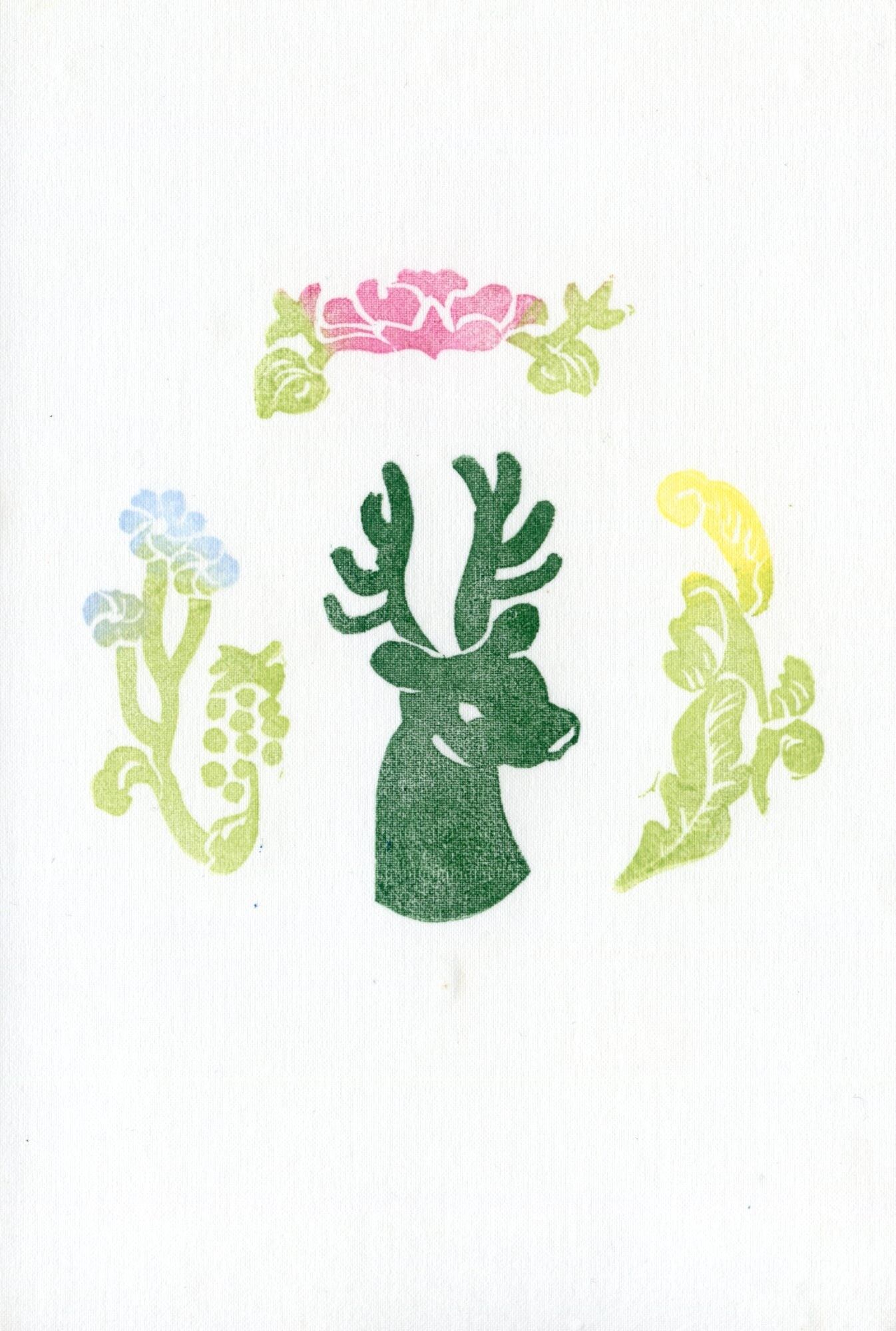 ・花鹿(夾纈屏風より)